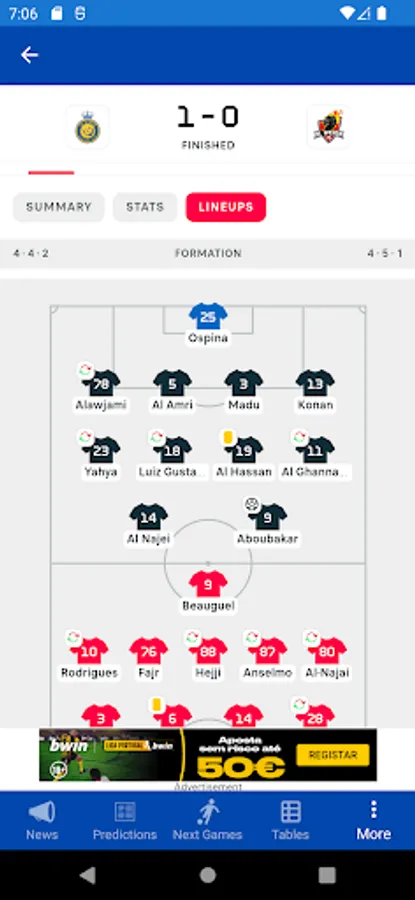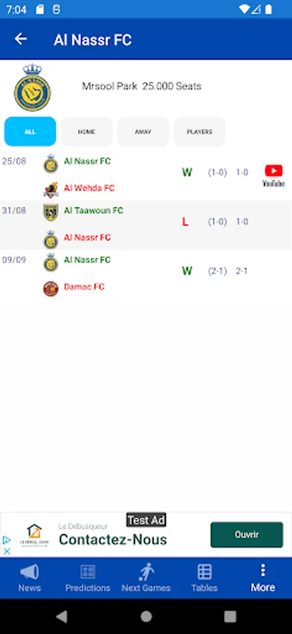 Predictions, Game HighLights, Game Summary, Players Database, Live Scores for Saudi Arabia Pro League,