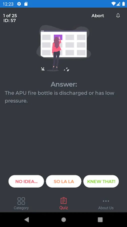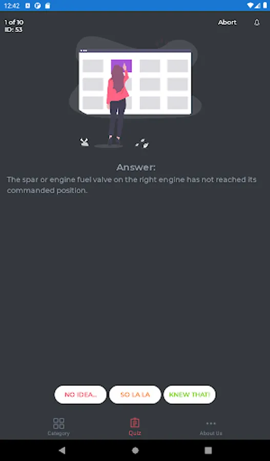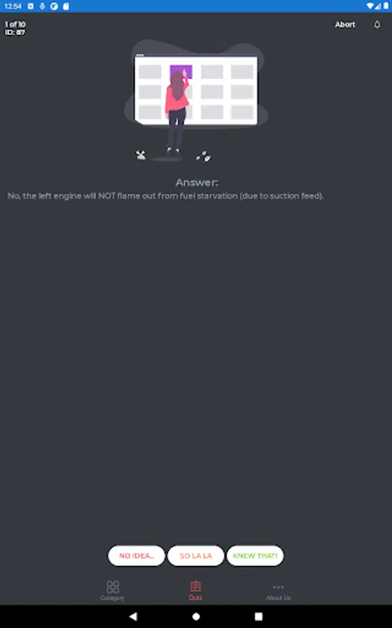 In addition, a categorized quiz is included, using flip cards to allow for repetition and learning.