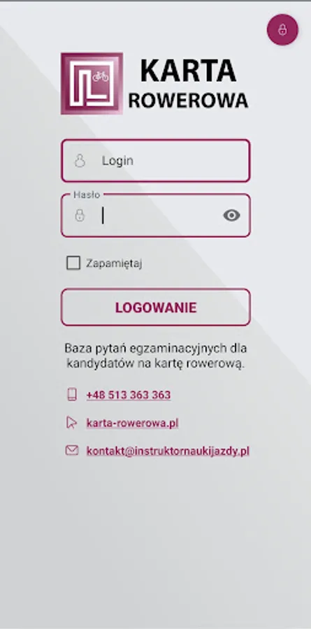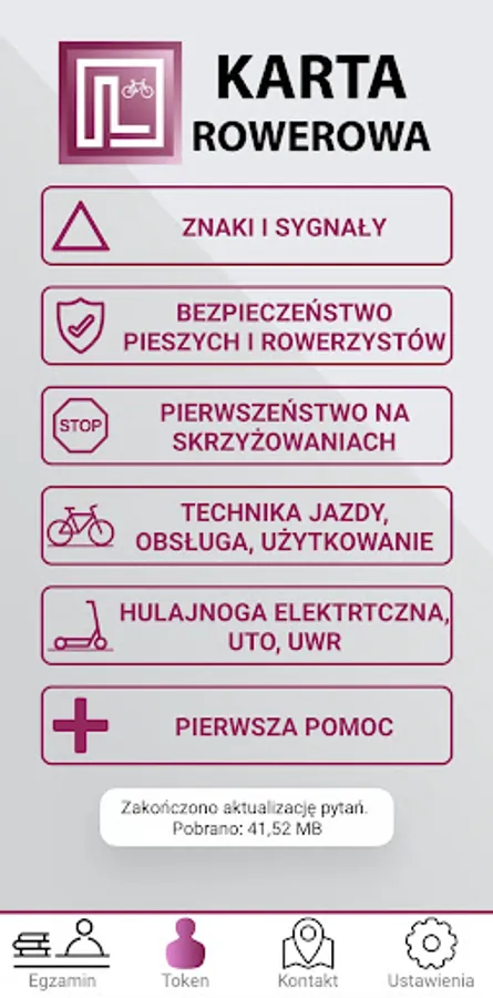 Our application includes study materials and test questions for holders of an active account from our website: www.karta-rowerowa.pl.