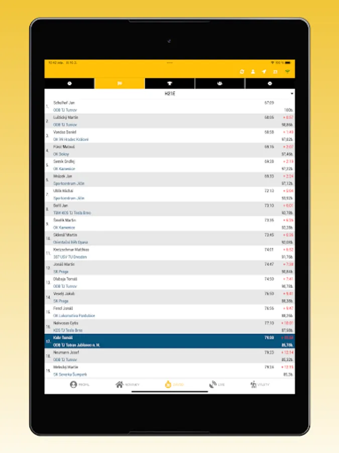 The application monitors complete events in the Czech O Tour series. By entering the personal registration number, the user pairs the profile with the race. The user can monitor his performance in detail throughout the event. There is an overview of news, complete results service, navigation to the race, live results or tips for trips.