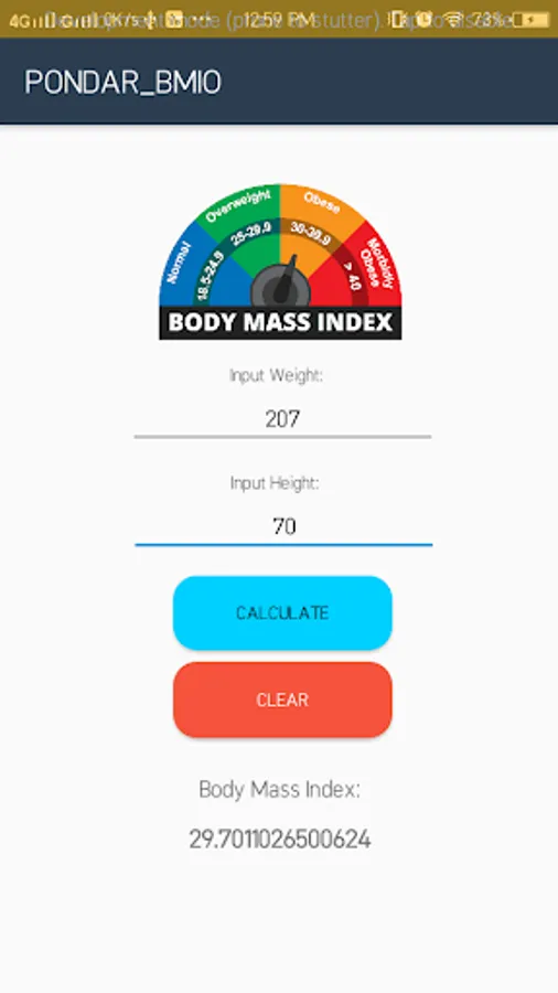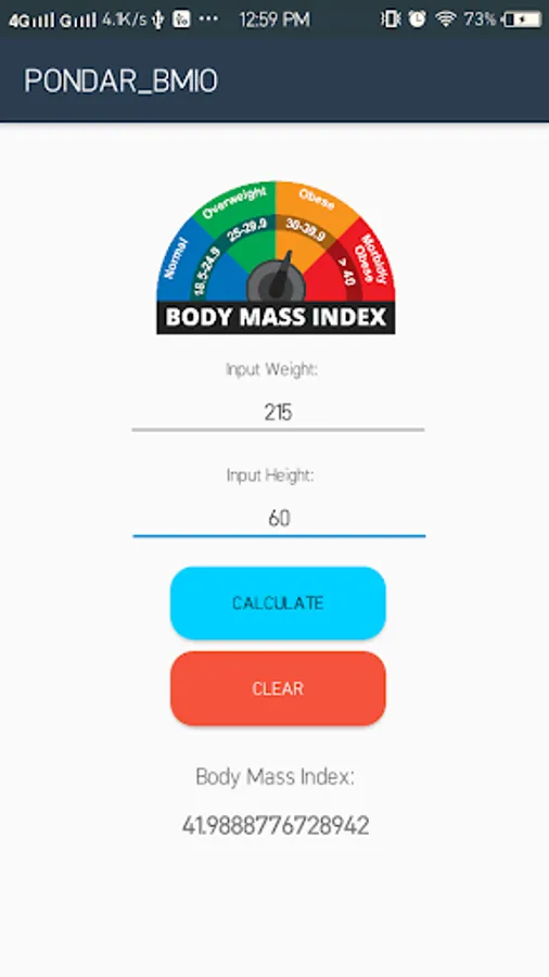 BMI_Pondar is a mobile application created by Joshua C. Pondar where it will help you to monitor and calculate your BMI (Body Mass Index) percentage of fat in your Body.