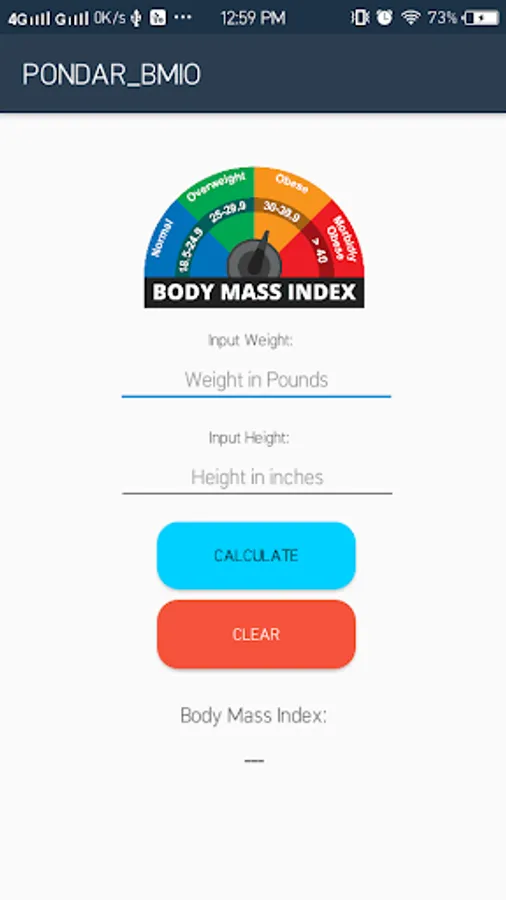 BMI_Pondar application is free for all, and all you need is your Mobile Phone. This app will only require your Height in Inches and Weight in Pounds to calculate your Body Mass Index of your Body.