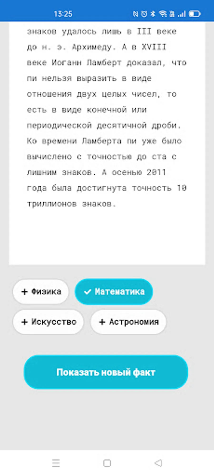 The application "QR-Knowledge" is designed to popularize science and educate people of different age groups. The application contains many entertaining facts from various fields of science. The knowledge base is constantly updated and improved.