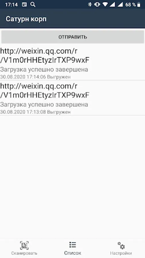 QR code scanner. Used to scan markings and send to HTTP service. Configurable via a QR code, which allows you to quickly install and get started with the application. Used as a scanner and TSD.