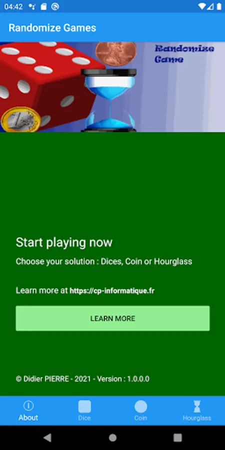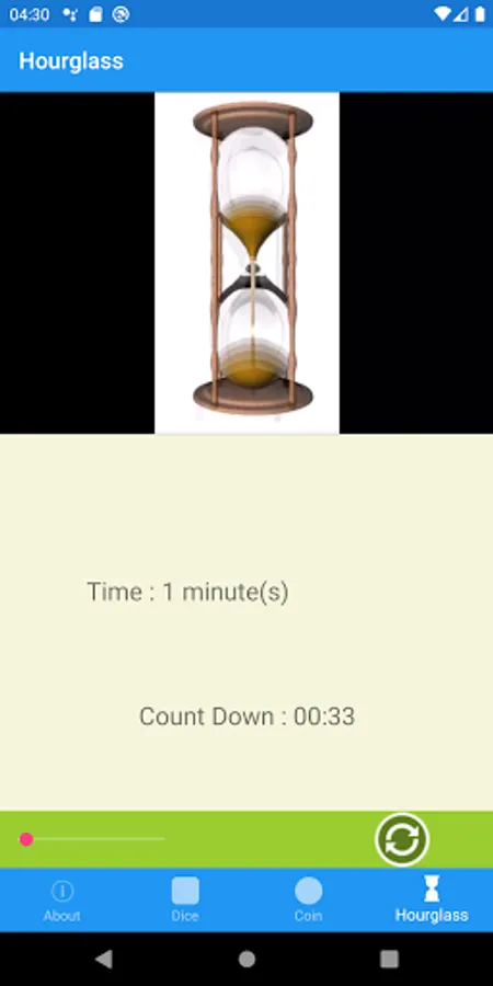 Choose the virtual Dices or the Coin or the Hourglass to play with your board games