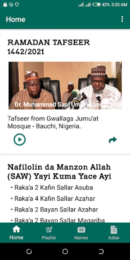 The most recognized App that contains a complete Ramadan Tafseer 1442/2021 which is easy for listening, listen offline Tafseer for each day in a single page by Dr. Muhammad Sani Umar Rijiyar Lemo Kano, Nigeria.