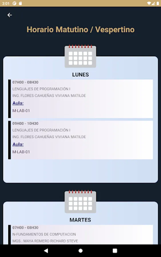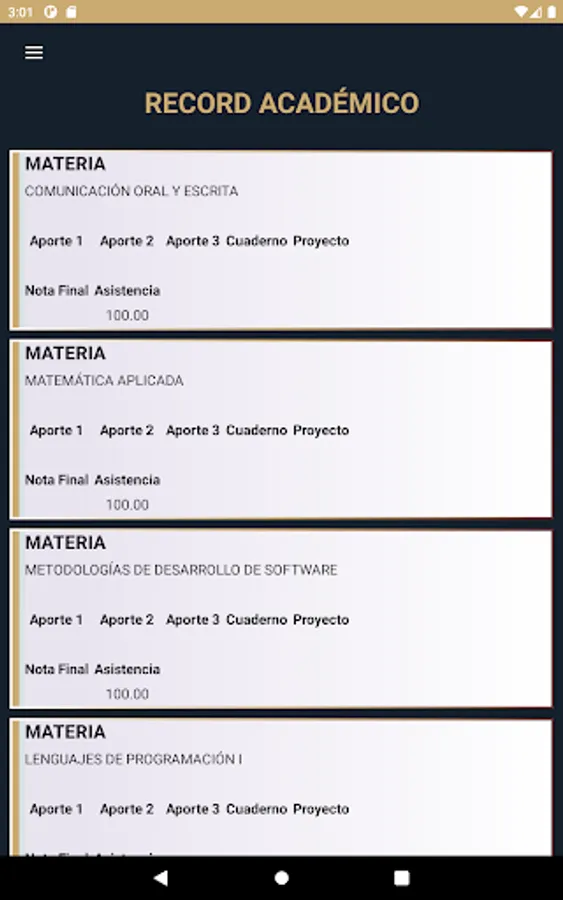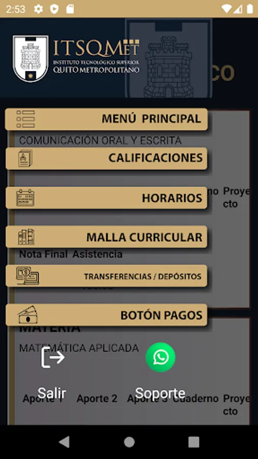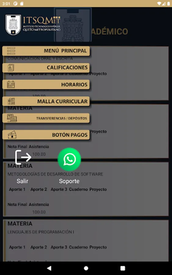 This application is oriented to verification of schedules, control of qualifications, consultation of academic mesh and management of tuition payment vouchers for the students that make up the Instituto Tecnológico Superior Quito Metropolitano