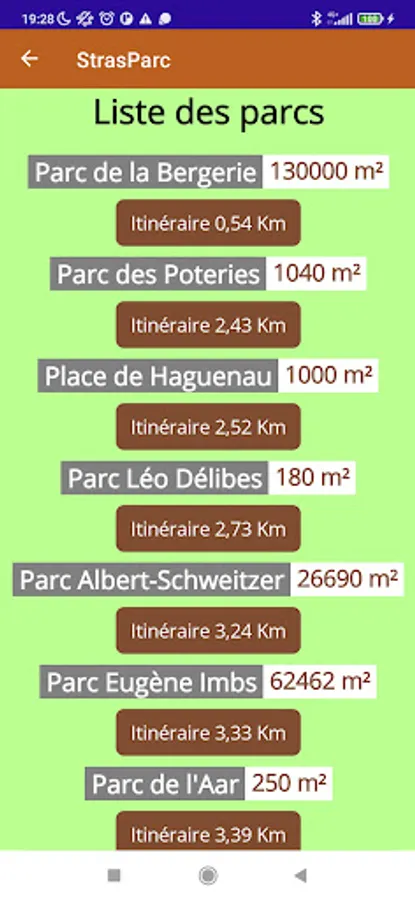 The parks are listed according to their distances from the user's GPS position.