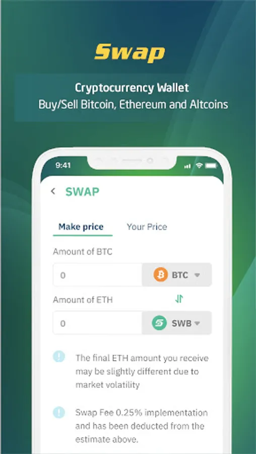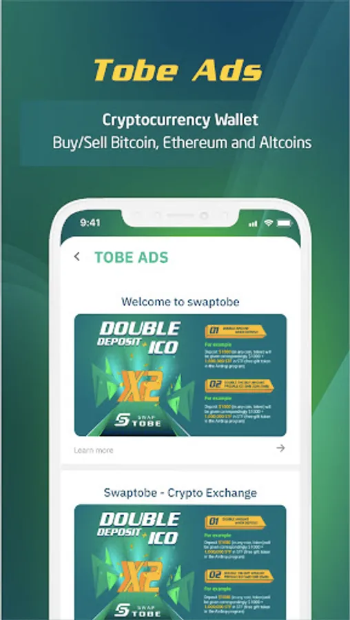 Swap Tobe is a smart coin wallet as well as a cryptocurrency exchange. Support a variety of transaction types, including Bitcoin, Ethereum, and Altcoins, while also supporting a variety of tokens across different platforms, including Ethereum (ERC20), TRON (TRC20), and the Binance Smart Chain (BSC, BEP20).