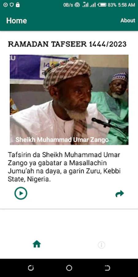 Wannan App ya kunshi Ramadan Tafsir na Sheikh Muhammad Umar Zango wanda ya gabatar daga Masallachin Jumu’ah na daya, a garin Zuru, Kebbi State, Nigeria.