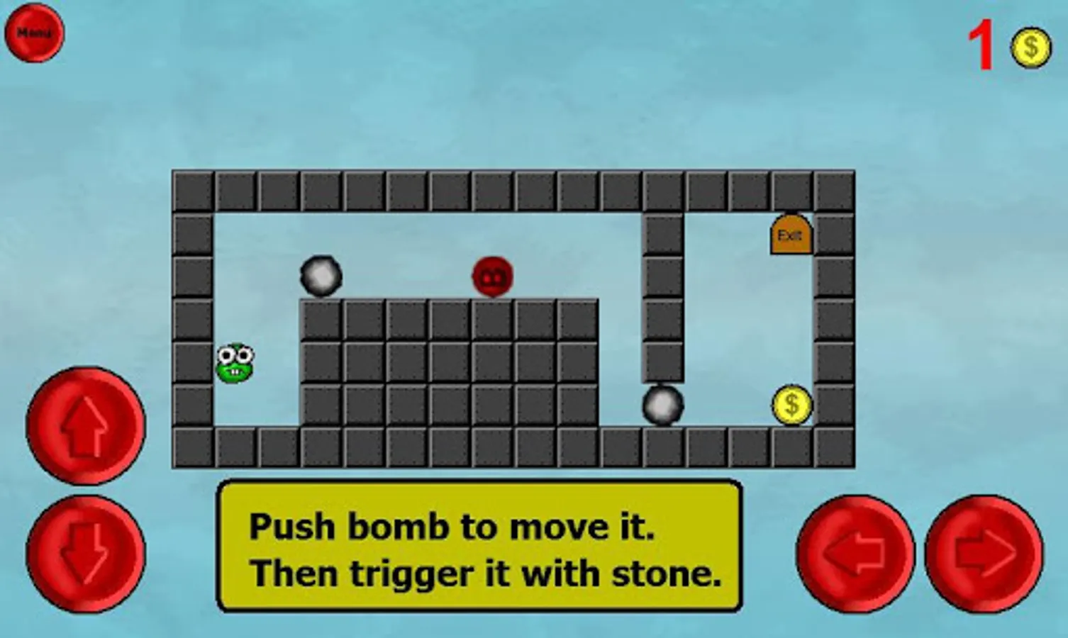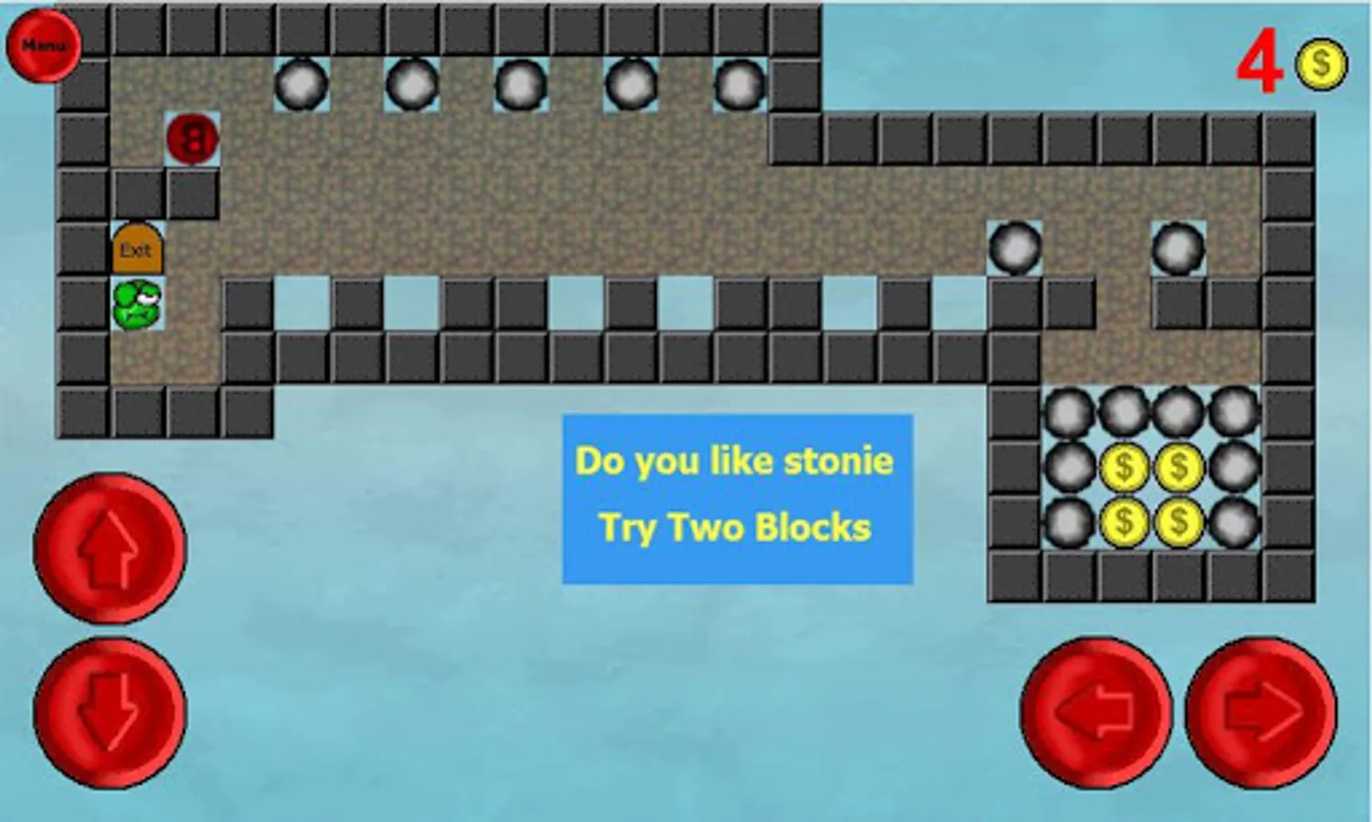 Run, push, dig and bomb your way to collect coins in 56 mind twisting levels. Collect coins to open a portal to the next level. Don't get stoned!