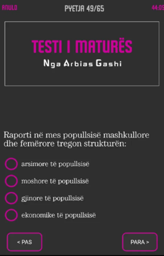 Aplikacioni "Testi i Matures" ka per qellim te ju ndihmoje maturanteve ne pergatitjen e testit te matures.