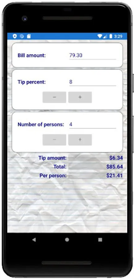 This calculator app help to calculate quickly the amount of tip base on the percentage and also give you the amount each person need to pay