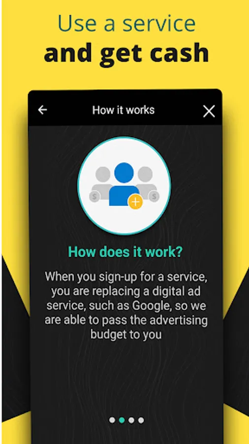 The app gives people cash back when they use a service. In traditional advertising - this money would be paid to Google or Facebook. We take that money and give it directly to our users. We generate revenue by taking 5% of what the service pays us. The other 95% goes to you. We review each service independently and do not accept payments for placement. The only way a service is featured in our app is if we review it first and find it valuable for our community. The app can be used to find side-hustles, new educational platforms, to grow your savings or even to find a new bank. Purpose gives you cash when you use a service - but without Purpose - you wouldn’t get any cash (sign-up bonus, etc.). The cash we offer is in addition to any incentive the service is offering you directly.