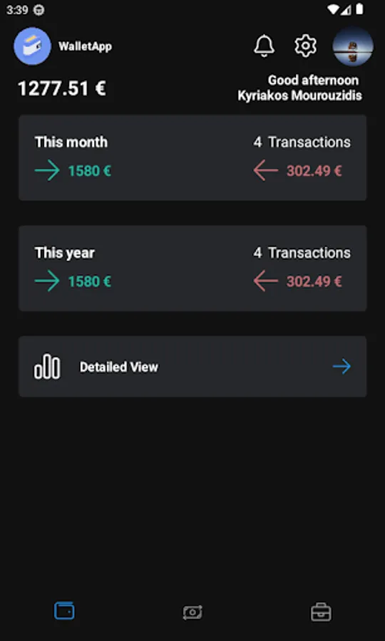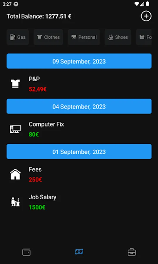The application contains a history of income - expenses as well as various other categories that you will see in the pictures.