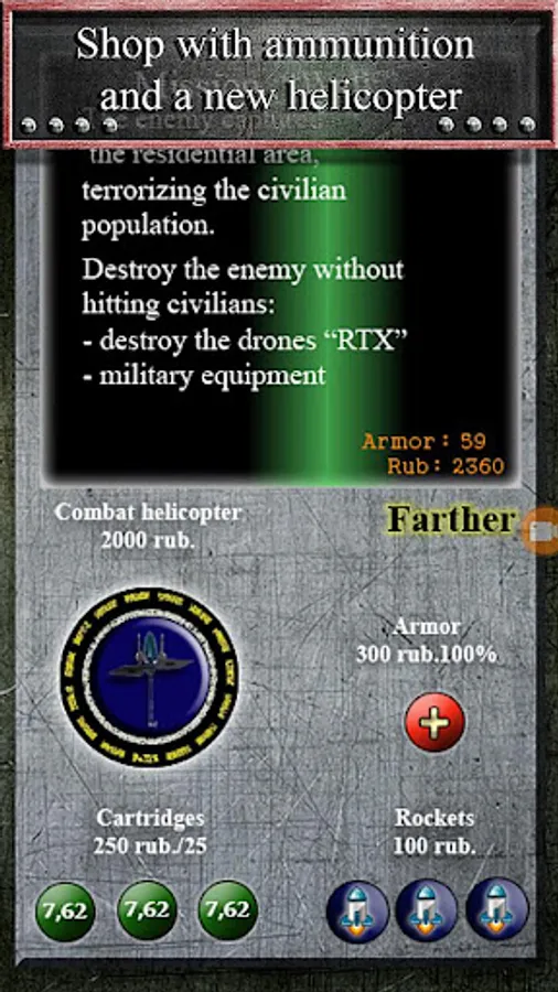 In the store, buy yourself ammunition, armor, new combat helicopter.