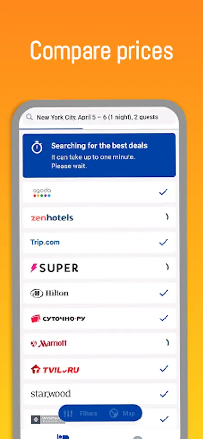 Our hotel app provides the latest last minute deals by comparing online hotel booking providers such as Booking com, Hostelworld, Zenhotels, Agoda, Homeaway, voyage prive and many more. Book hotels with great deals and discounts to make your trip convenient.