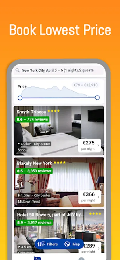 ✔ Various filters to find the ideal hotel based on price, rating, location, services offered and many other customizable parameters
