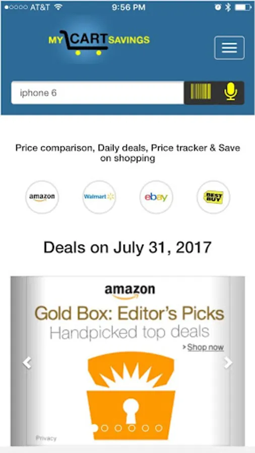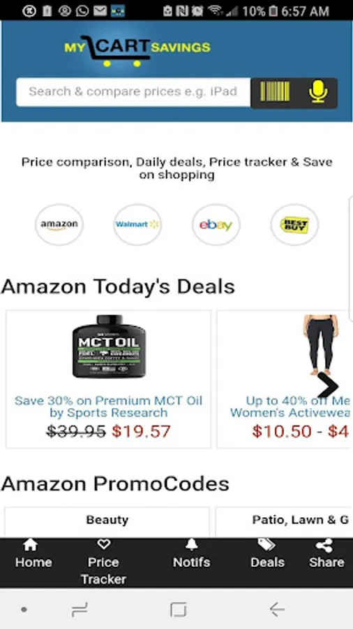 MyCartSavings helps with price comparison, barcode scanner, gives daily deals, amazon price tracker, walmart price tracker, eBay price tracker, price history, amazon promo codes & amazon coupons and save on your shopping. It's FREE app that compare online real time prices of Amazon, Walmart , eBay & Best Buy and helps to "Shop" those items from retailer. It also do price comparison using your voice, barcode scanner & gives daily deals from Amazon, Walmart, eBay, Best Buy, Macy's, Target, GameStop, Loft, Fossil, eVitamins, AliExpress, JCPenney and Men's warehouse. And also track prices and gives email notification & notifications on your phone when prices goes below expected price. Black Friday 2021, Cyber Monday 2021 Deals.