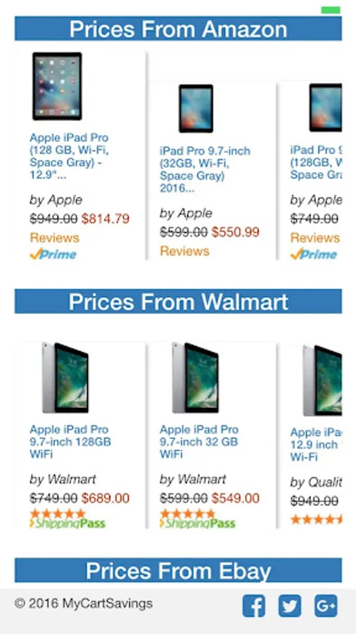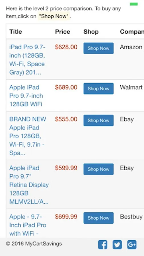 1) Enter the particular item name you want to shop e.g. iPad Pro. It will give the search results along with prices from Amazon, Walmart, eBay where you can do price comparison at level1.