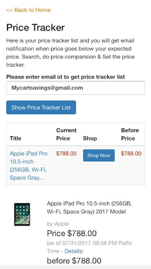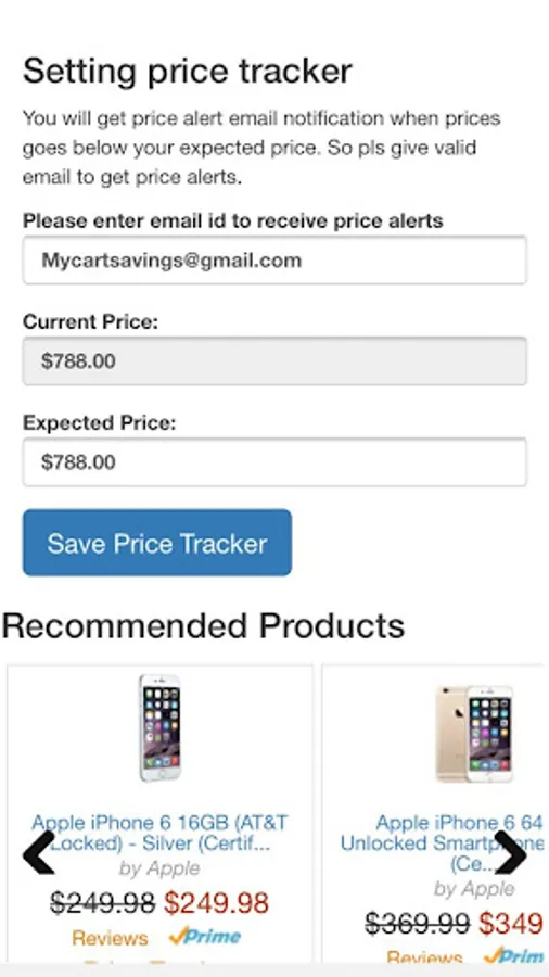 This app helps to do Amazon price tracker, Walmart price tracker, eBay price tracker and gives email notification and notifications on your phone when price goes below your expected price. While doing comparison, click on "Price Tracker" and set your expected price. We will track prices and gives email and push notifications.