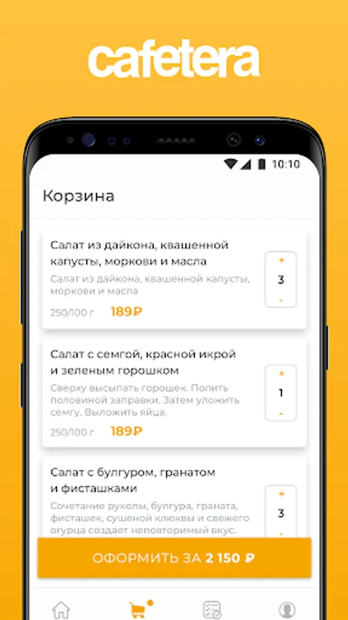 The application is developed only for Cafetera customers. With it, you can order delivery of ready meals to the business center, where the point of delivery of orders Cafetera Delivery is organized. Orders are taken at a specific time from 9:00 to 12:00. The application works in the city of Moscow.