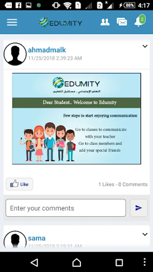 An Application that allows students, parents,teachers and School to Comunicate positivly in protected environment.