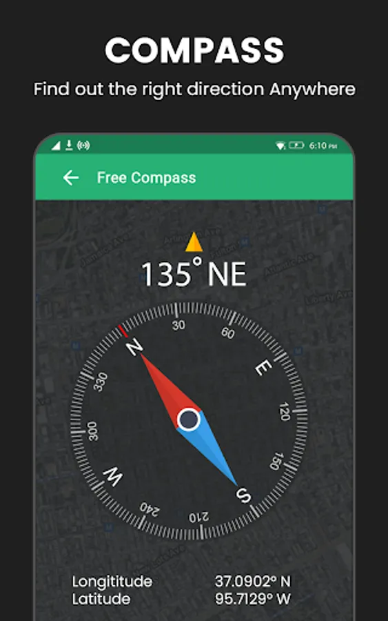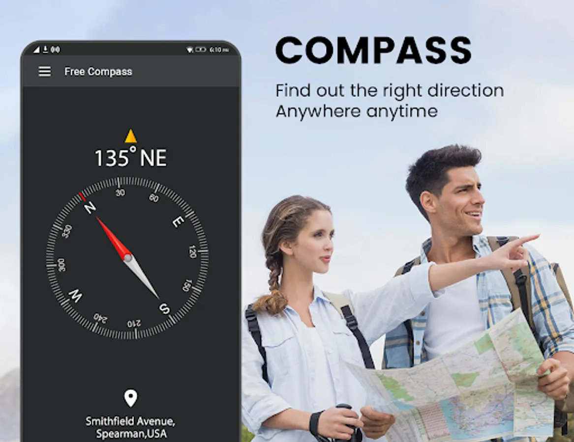 Digital compass app for android shows not only north, east, south and west but also shows the angle and azimuth. You can get smooth virtual compass with large and small view. So you can find directions easily with simple compass app. GPS compass free app builds using magnetometer or accelerator and gyroscope of the device. GPS Compass Direction app is the most accurate compass and the best tool for outdoor activities. Digital compass 360 is the best direction finder app for all android users.