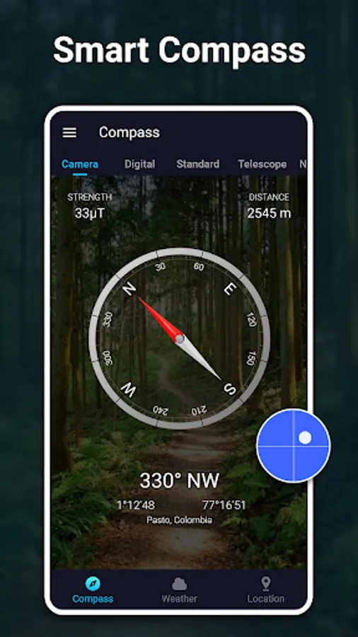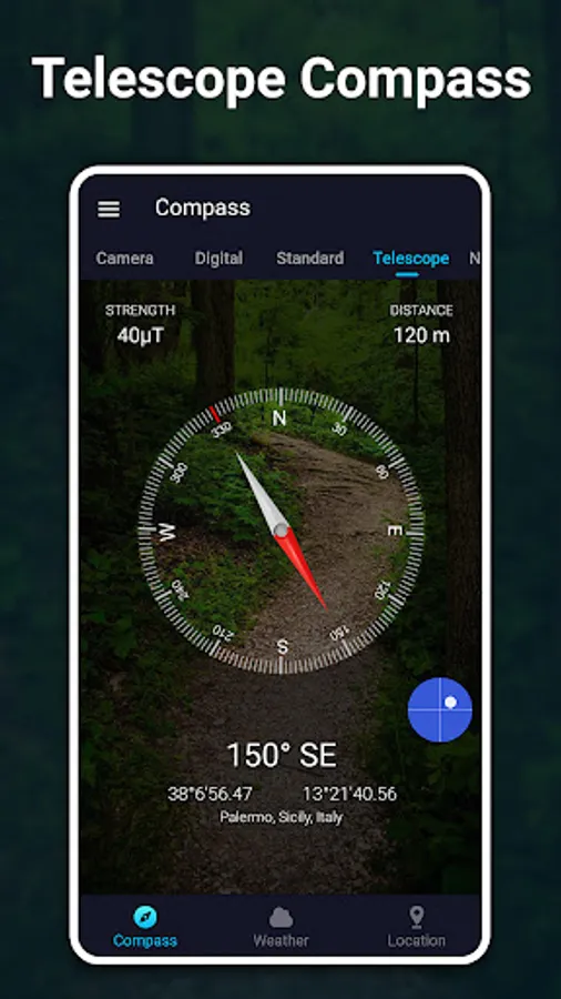 🧭 Telescope Functionality: Incorporate a telescope view for enhanced measurement and better focus on distant objects, all within the digital compass interface.