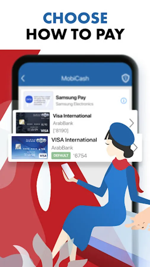 2. Set up an account and add your preferred payment cards to your Arabi MobiCash wallet (VISA, Mastercard). Apple Pay/Samsung Pay will be automatically added to your wallet
