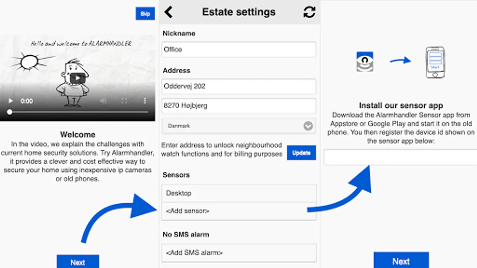 2) Download the normal Alarmhandler app on your regular phone, sign up for an account