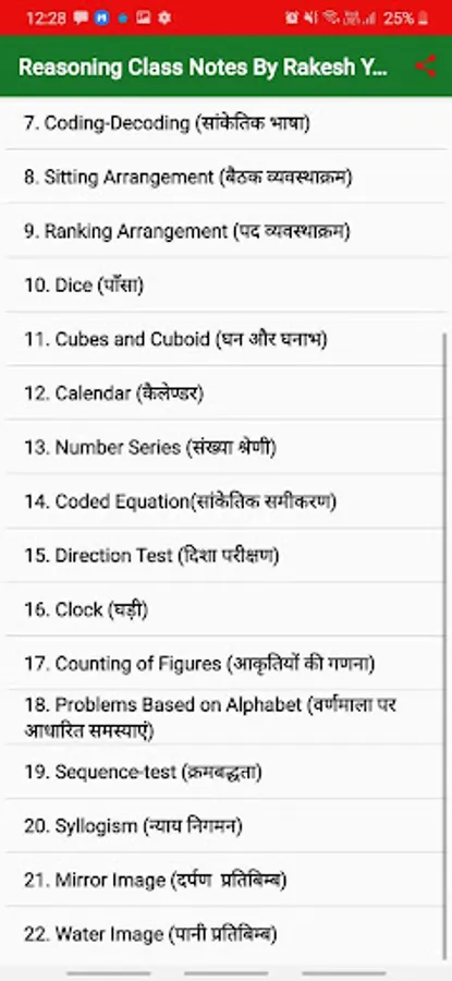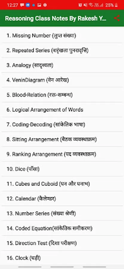 Rakesh Yadav Reasoning notes in Hindi Chapter Details: