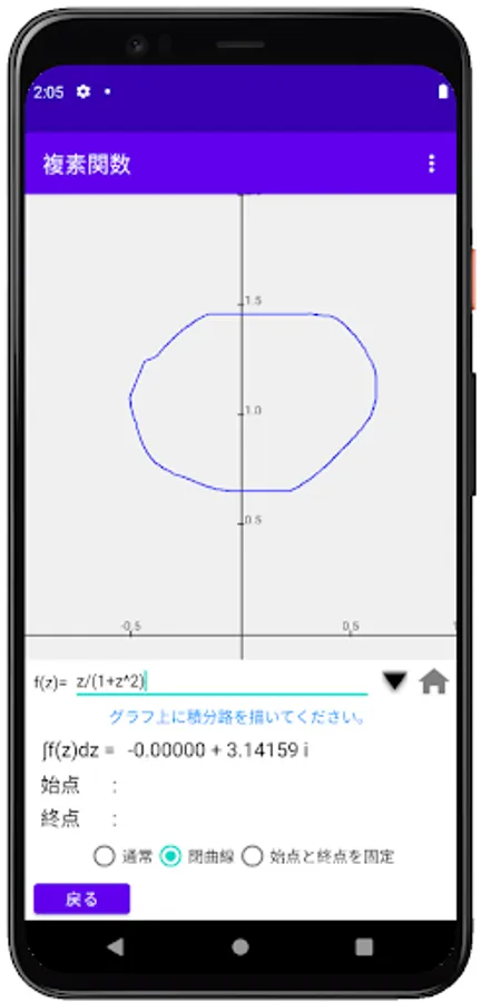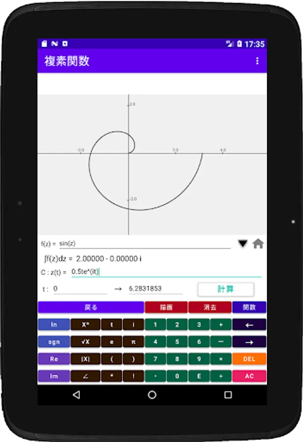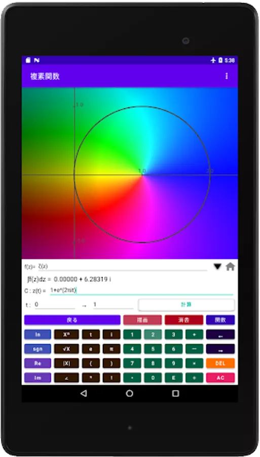 On the basis of the domain coloring method, the app visualize complex functions. By making absolute value of complex number to brightness and making argument correspond to hue, complex functions is drawn on the Gaussian plane. Secondly, app integrates defined function over the path that you draw.
