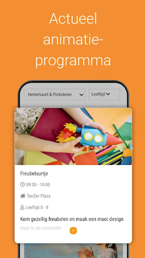 Show your animation program in the VakantieApp with our special widget. The guest can view, filter and register the program in the VakantieApp. If you also want to display the widget on your website or column, that's no problem at all. Handy, right?