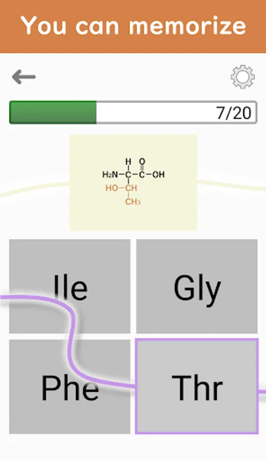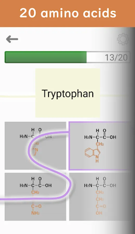 "Amino Acid Quiz 20" is an educational application that helps you memorize the 20 amino acids efficiently.