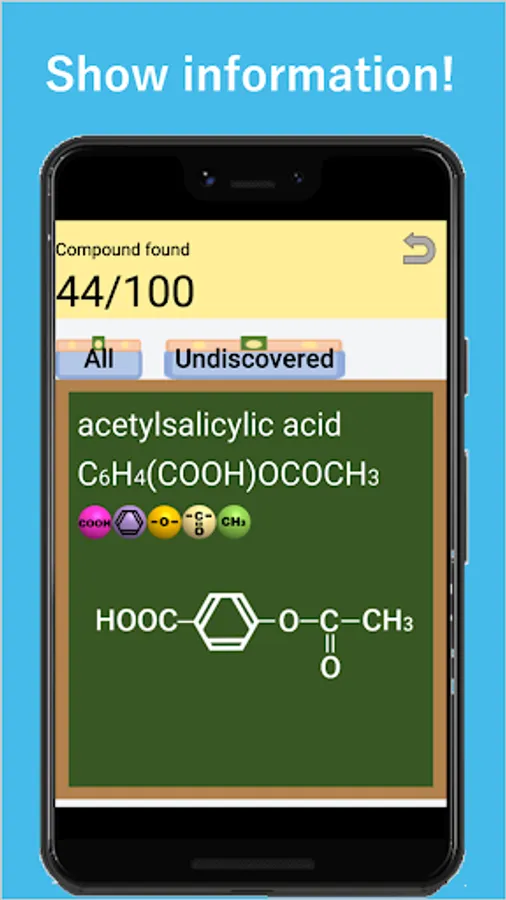 Includes around 100 substances taught in high school chemistry. Review your created compounds, easily search for chemical formulas and structures, and overcome areas of difficulty. After completing the 100 substances, discover secret compounds...!