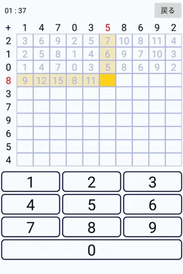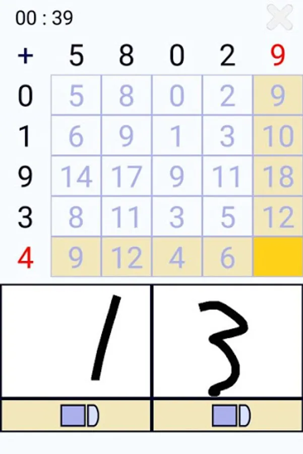 Fill in each blank by adding a number in a row to a number in a column.