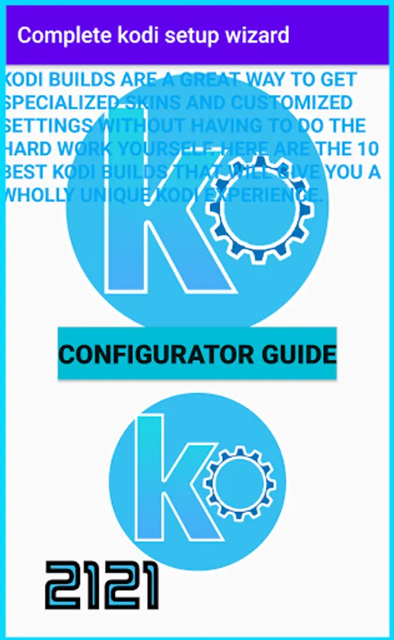 Official complete configurator for Kodi setup wizard, you can easily set up and solve all kodi configuration's problems.