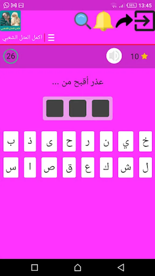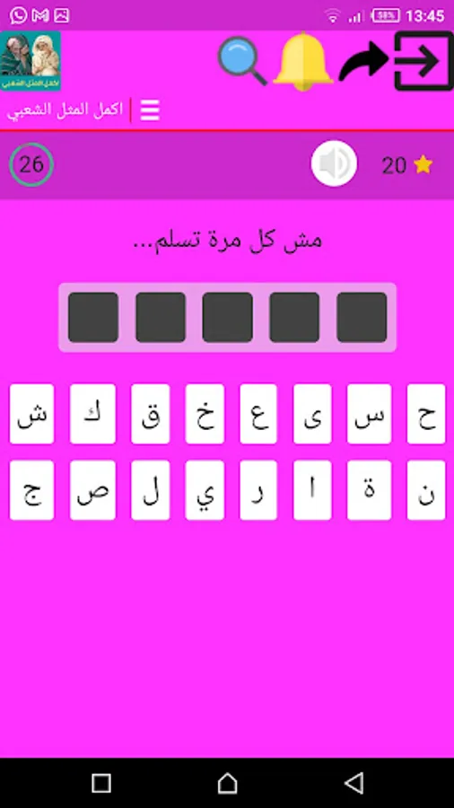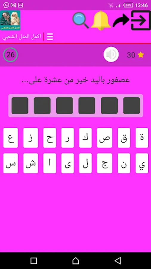 A popular gas application designed in the form of a game that contains several popular examples, each like missing a word, this word the user completes through the keyboard at the bottom of the application.