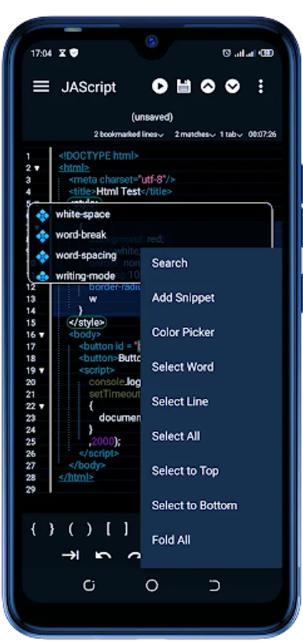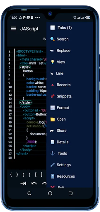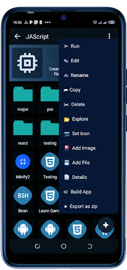 JAScript is a code editor for building android apps and games using web technologies such as TypeScript, HTML, CSS, JavaScript , PHP ,JQuery, React etc. Using JavaScript IDE one can build local and web apps to caters ones specific needs anytime anywhere using their phone. Local Android JavaScript apps can be converted to standalone android apps (apk) while HTML web apps can be uploaded to a website as a web app. In order to enhance gaming JAScript is intergrated with a 3D game library in order to create android 3D games. You can also use JAScript app to create 2D and 3D HTML5 games. Coding and testing in this code editor is faster since no pre installation is always required. In JS Console you can run JavaScript console apps using V8 JavaScript Engine with ES6 support.