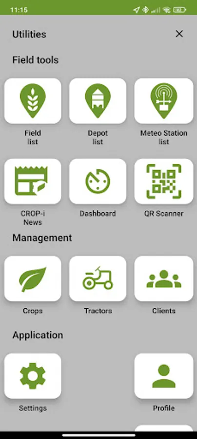 CROP-i is a modern crop management application that provides a unified environment for efficient farm management. The application is structured into functional categories, each designed to help farmers streamline their daily operations and support the decision-making process. Here is a breakdown of the different categories:
