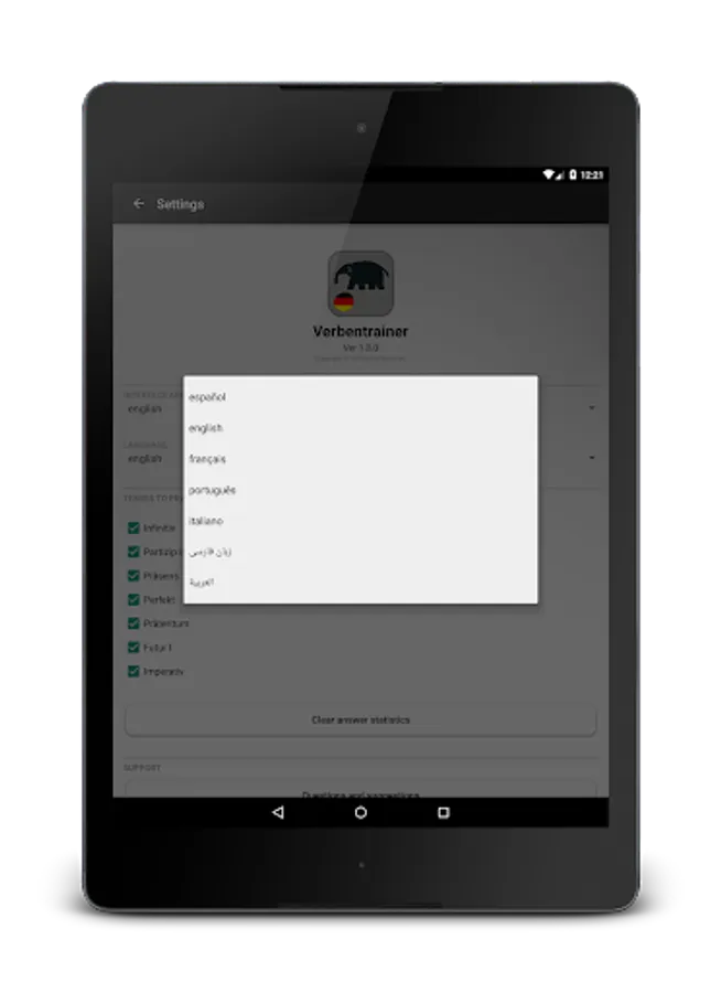 If you are looking for a way to practice the most commonly used German verbs in any one of the seven verb tenses, you're in the right spot. “Verben - Trainer” uses a database of the most important German verbs to help you master the regular and irregular forms that you will need on a daily basis. It is FREE and works 100% OFFLINE.