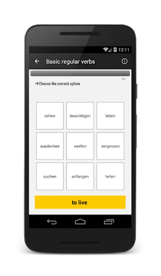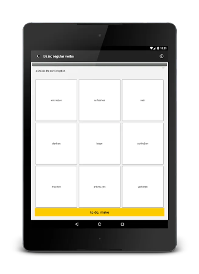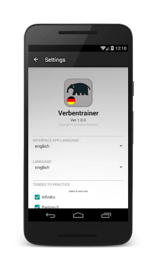 If you are looking for a way to practice the most commonly used German verbs in any one of the seven verb tenses, you're in the right spot. “Verben - Trainer” uses a database of the most important German verbs to help you master the regular and irregular forms that you will need on a daily basis. It is FREE and works 100% OFFLINE.