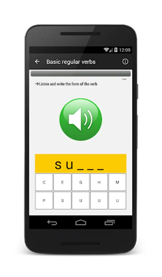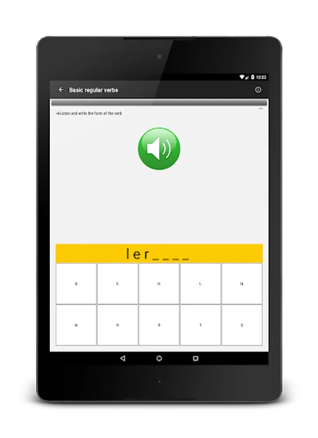 ◉ Predefined group of verbs: “Basic regular verbs”, “Basic irregular verbs”, “All regular verbs”, “All irregular verbs”, “All verbs”