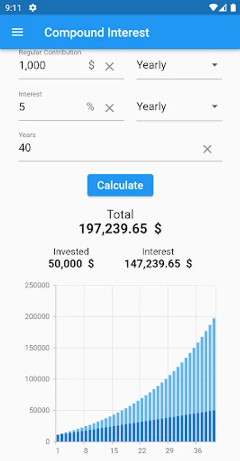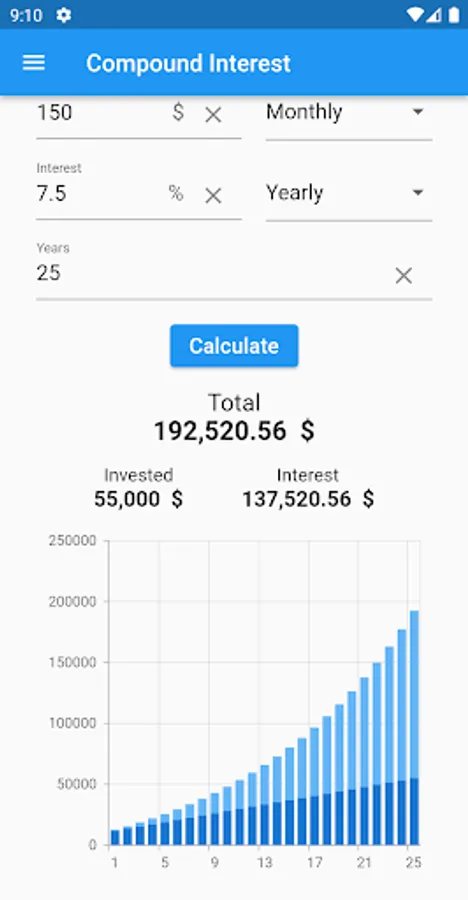 Thanks to the Compound Interest Calculator application you will be able to check the possible gains or losses that you can obtain over several years.