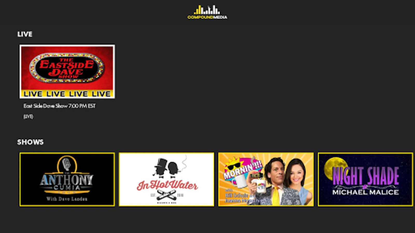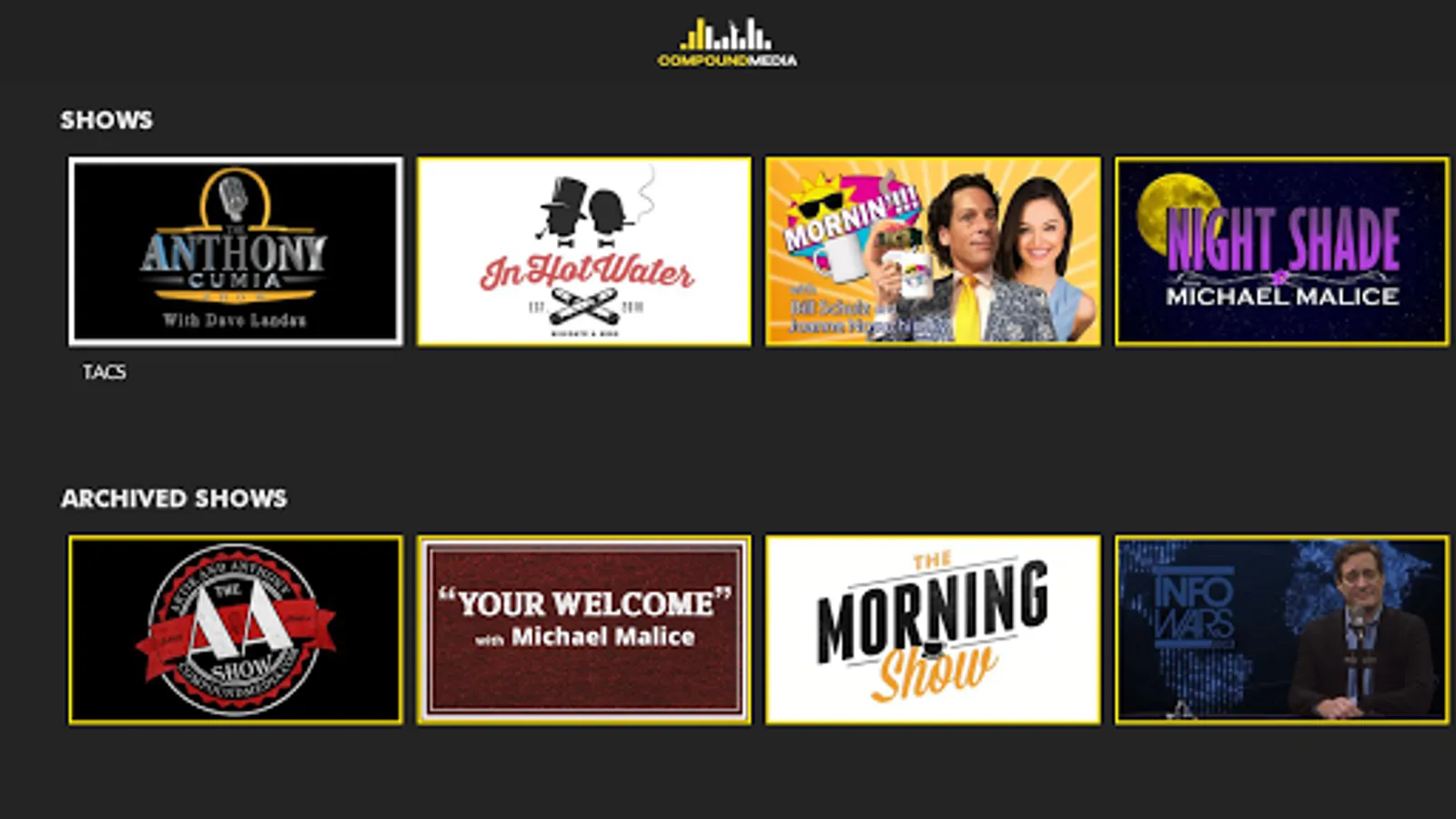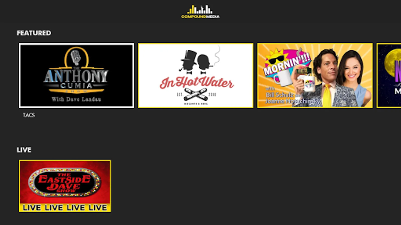 Compound Media is a subscription-based on-demand streaming media platform that broadcasts live American audio and video podcasts.