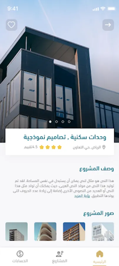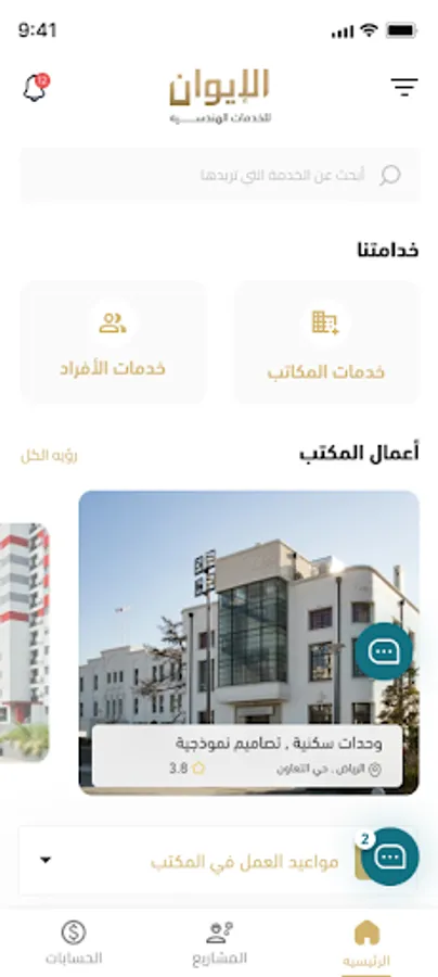 - Complete and complete follow-up of all the details and steps of your project and obtain all its data from anywhere and at any time because the application is first-hand, and the application also provides you with spaces to communicate with specialists working on your project