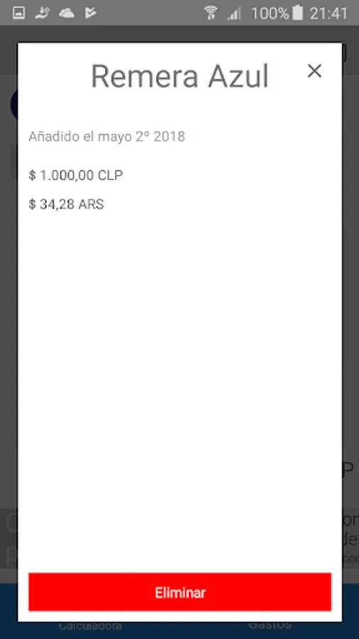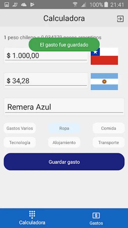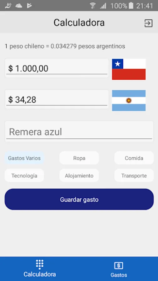 Compras en Chile es un convertidor de pesos argentinos a pesos chilenos, una herramienta muy útil cuando estás de compras por Santiago. La aplicación funciona off-line, por lo que no necesitás internet para utilizarla. También podés guardar cada gasto para que puedas llevar un control del total gastado.