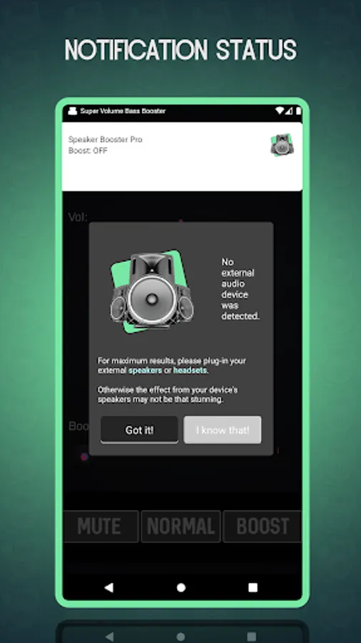 What sets SubWoofer Amplifier Bass Plus the best application is that when a user activates boost this app not only amplifies the music to the end, but also uses the built-in Android equalizer to optimize the frequency channels by means of a special algorithm. So the result is a stronger and clearer boosted sound and Music.