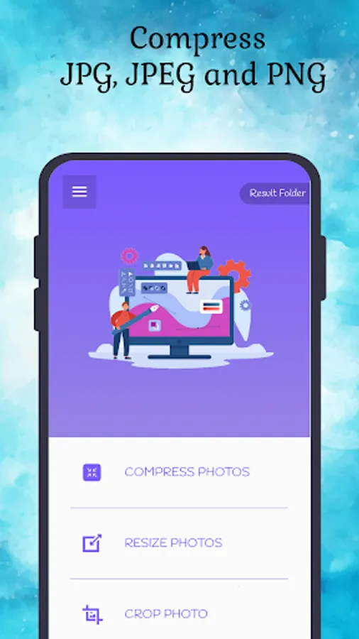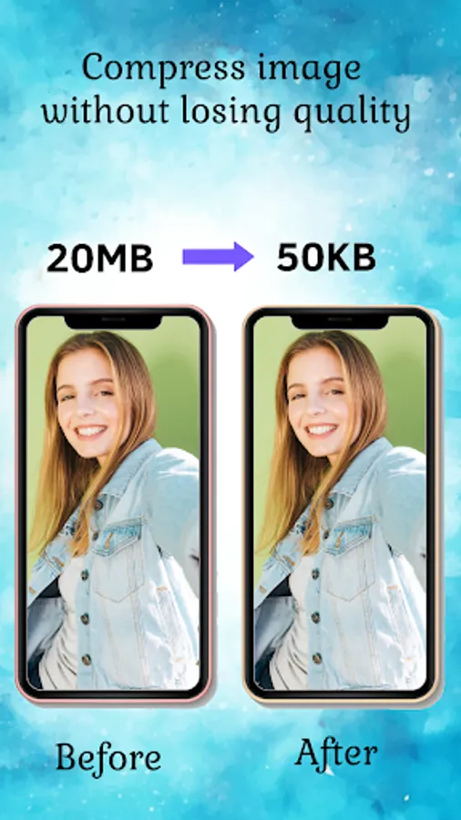 Select multiple images you want to resize, convert, or compress in batch. This app will compress or reduce image size in mb to kb. and picture will be saved as jpg or png.